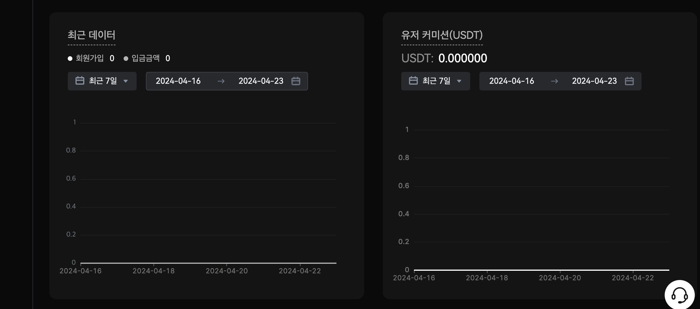 여기에 표시된 차트는 고객 등록 및 예금의 추세는 물론 귀하가 획득한 커미션을 제공합니다. 다양한 날짜 범위를 선택하면 시간이 지남에 따라 프로모션 노력이 어떻게 변하는지 쉽게 관찰할 수 있습니다.