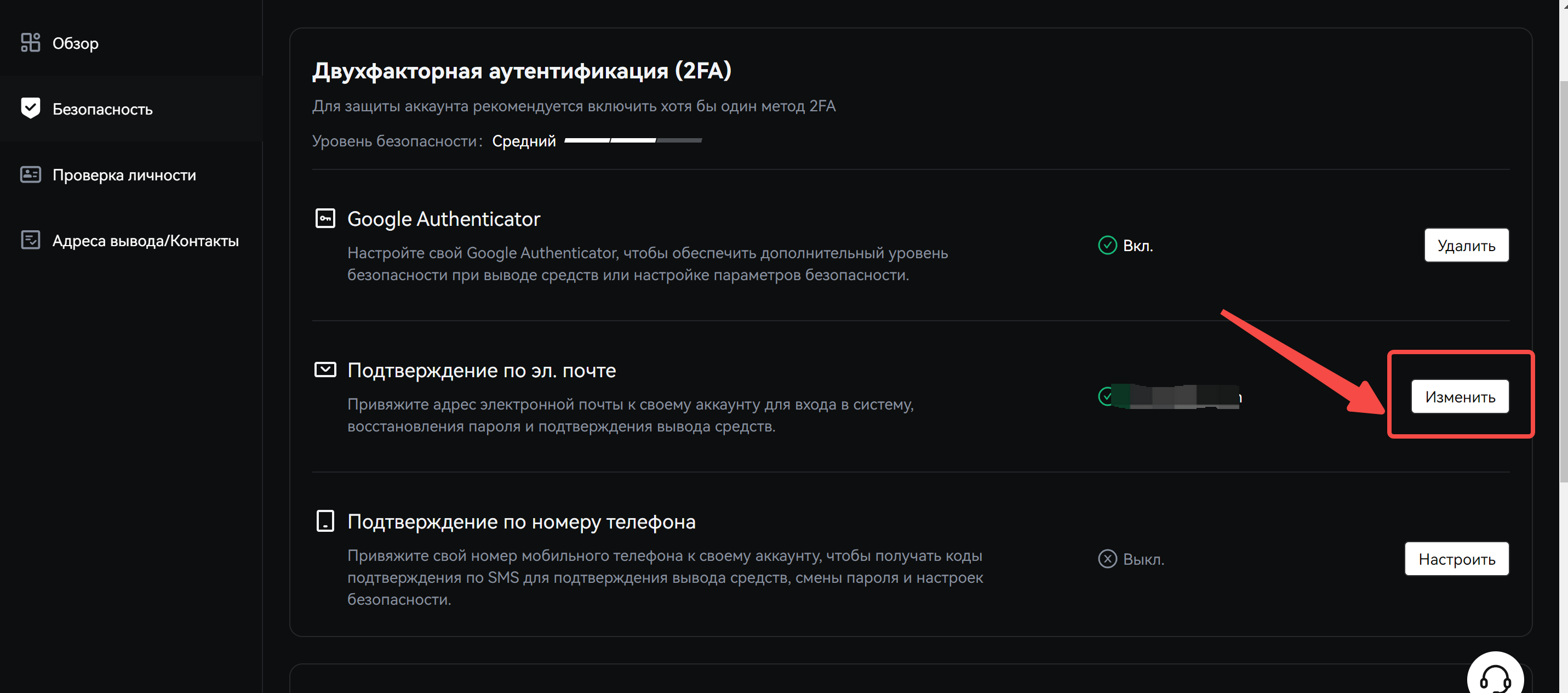 2. Нажмите «Изменить» в разделе «Подтверждение электронной почты».