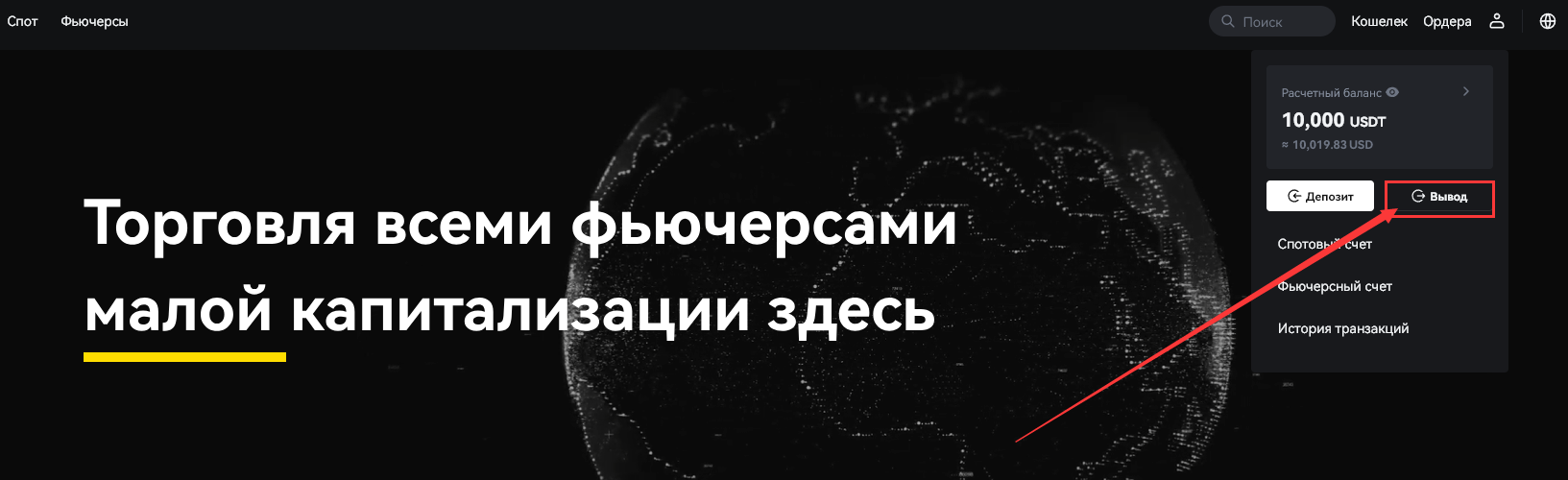 1. Войдите на официальный сайт KCEX: www.kcex.com , нажмите в правом верхнем углу [Кошельки] — [Выйти]