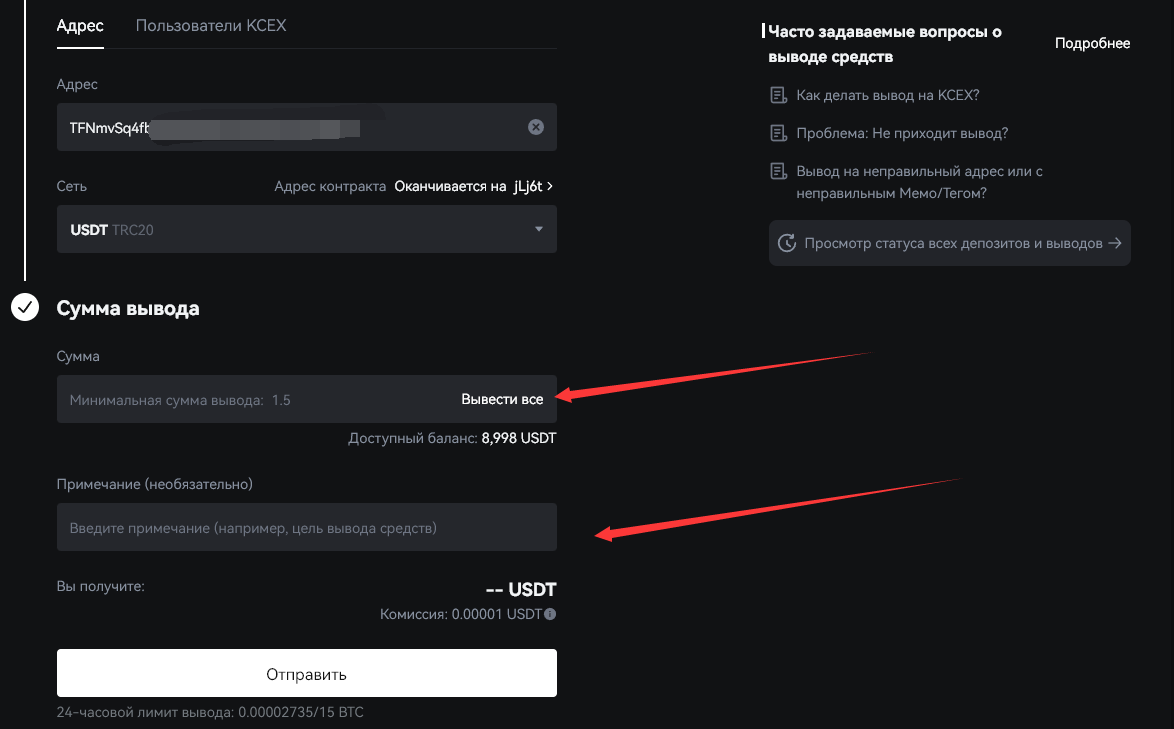 3. Введите сумму, которую хотите снять, и добавьте необходимые примечания (необязательно).