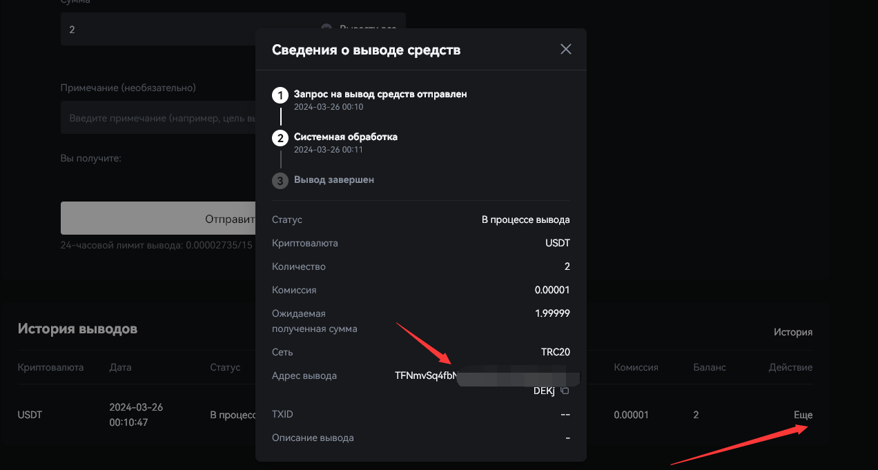 5. Дождитесь зачисления вывода. Вы можете проверить свои записи о снятии средств в [История вывода средств].