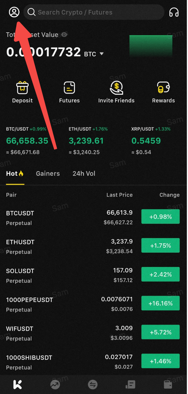1. After successfully logging into the APP, navigate to the top left corner of the homepage and click [Personal Center].