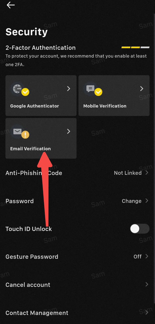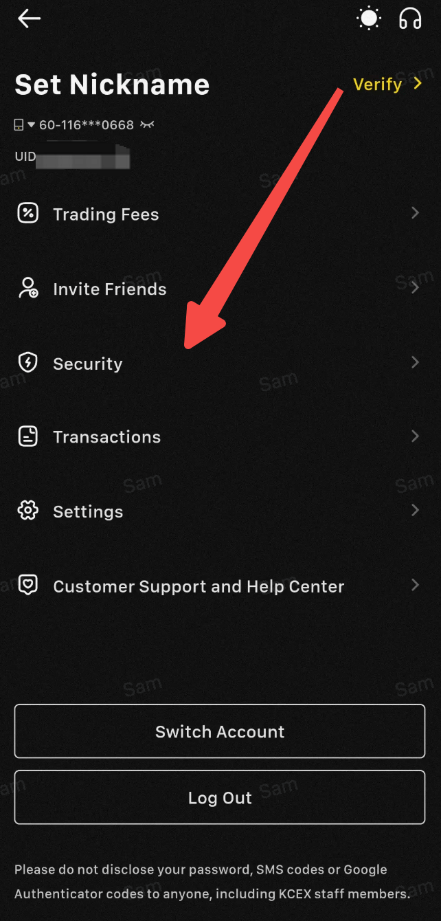 1. Log in to the official KCEX website, hover over the user icon, and click on [Security].