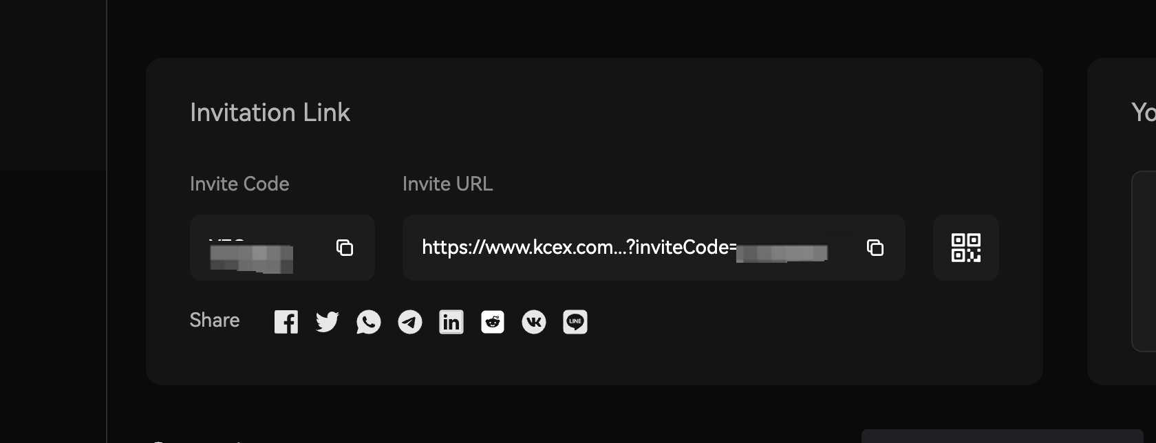 At KCEX, each user will receive a unique invite code. You can use the default invite link or your exclusive invite code to invite friends to join our platform. Additionally, for easy sharing, you can generate a unique QR code, which your friends can simply scan to join easily and enjoy trading fun together.