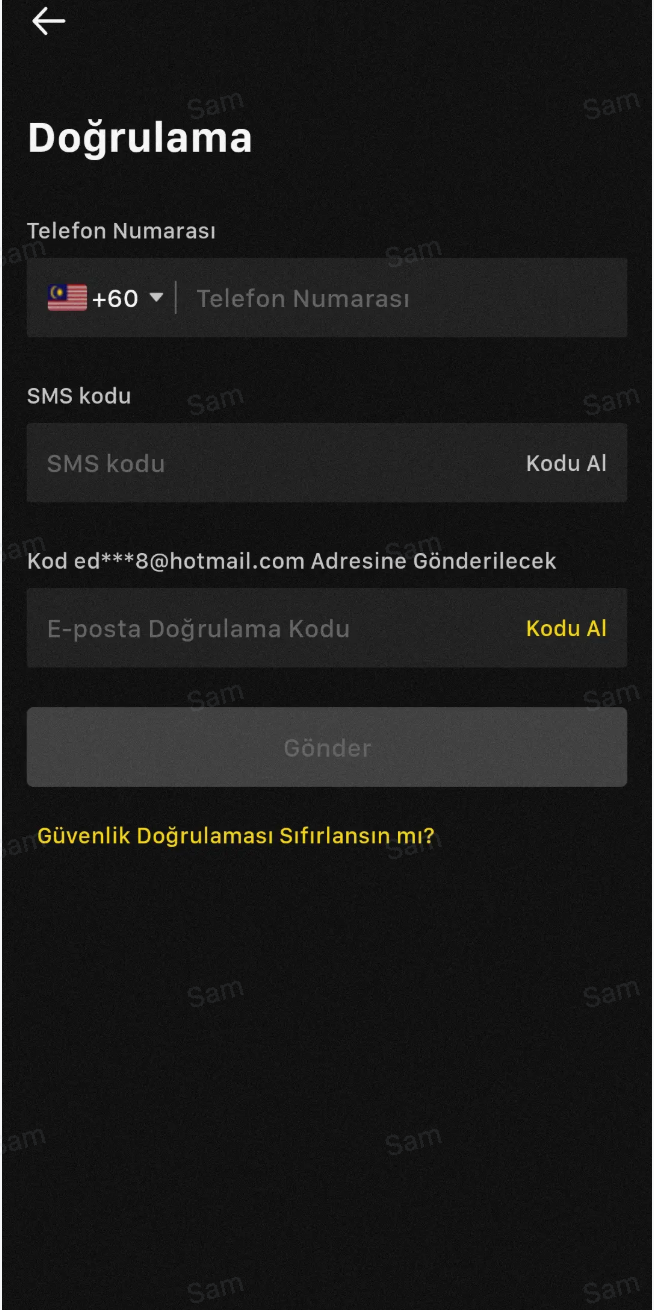 4. Ülke kodunu seçin, cep telefonu numaranızı, SMS doğrulama kodunuzu ve e-posta doğrulama kodu/Google doğrulama kodunu girin, ardından bağlamayı tamamlamak için [Onayla] 'ya tıklayın.
