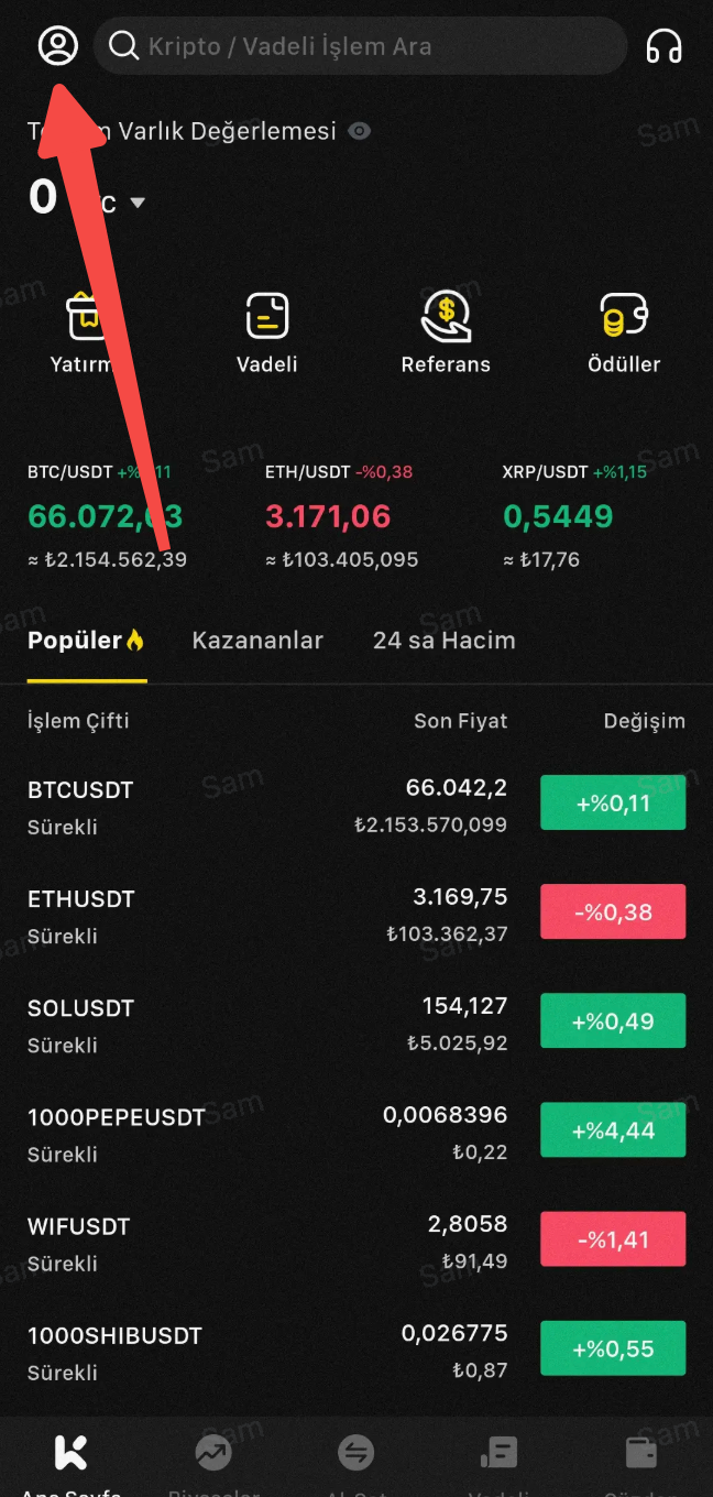 1. Uygulamaya başarıyla giriş yaptıktan sonra, ana sayfanın sol üst köşesinde yer alan [Kişisel Merkez]e tıklayın.