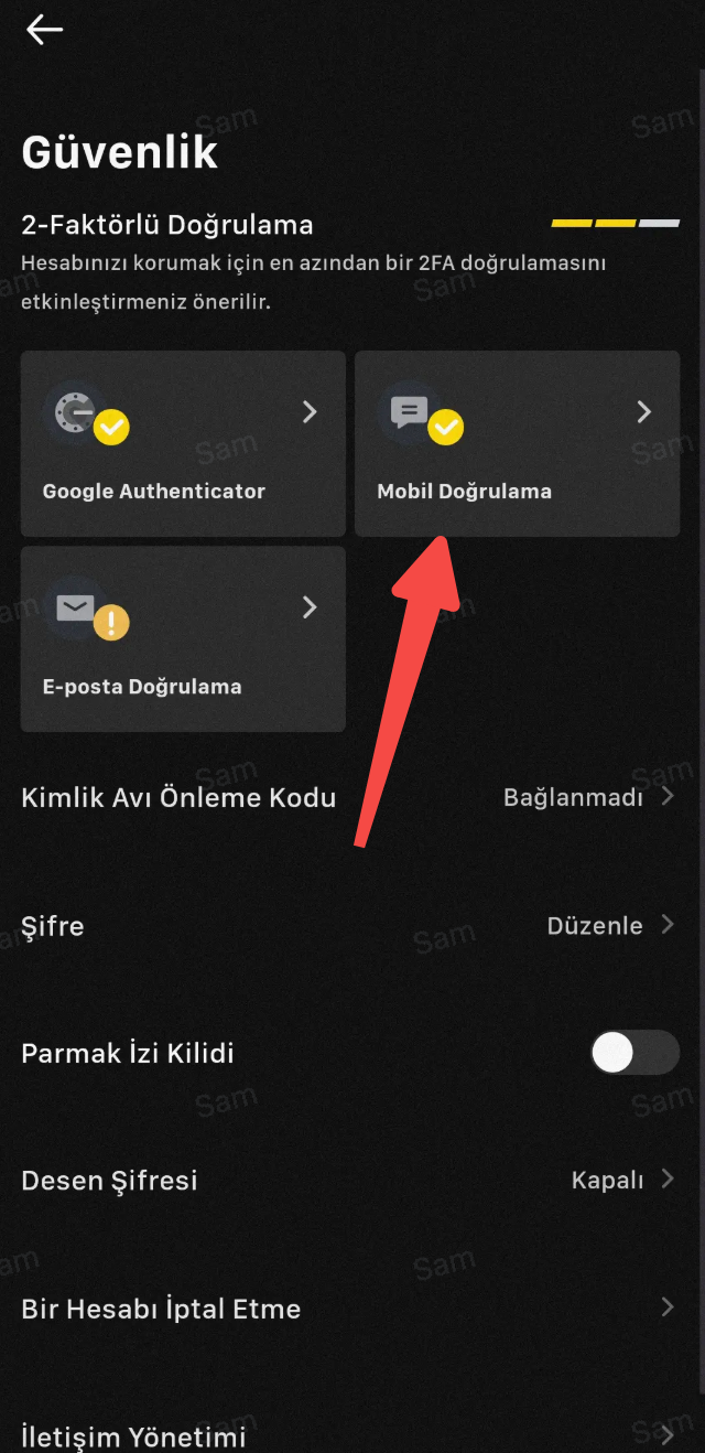 3. Güvenlik Merkezinde, [Mobil Doğrulama]‘ya tıklayın.