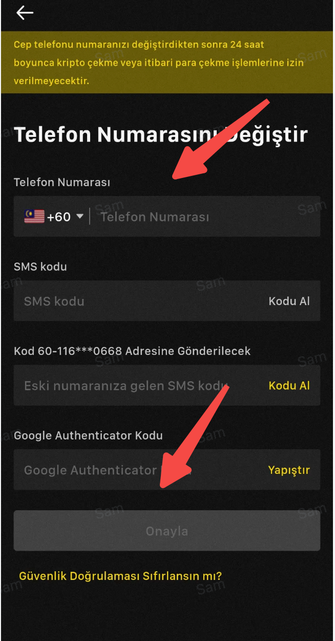 **Self servis değişikliği nedeniyle hesabınızda oturum açamıyorsanız veya telefonunuza erişiminizi kaybettiyseniz, lütfen yardım için çevrimiçi müşteri hizmetlerimizle iletişime geçin.