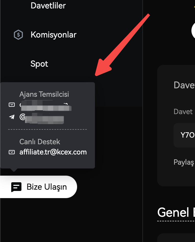 Not: Kullanım sırasında herhangi bir karışıklıkla karşılaşırsanız veya yardıma ihtiyaç duyarsanız özel hesap yöneticinizle iletişime geçmekten çekinmeyin veya 7/24 çevrimiçi müşteri desteğimizle istediğiniz zaman iletişime geçmek için sağ alt köşedeki müşteri hizmetleri simgesine tıklayın. Ayrıca, affiliate@kcex.com adresine bir e-posta da gönderebilirsiniz; size destek sağlamak için elimizden geleni yapacağız.