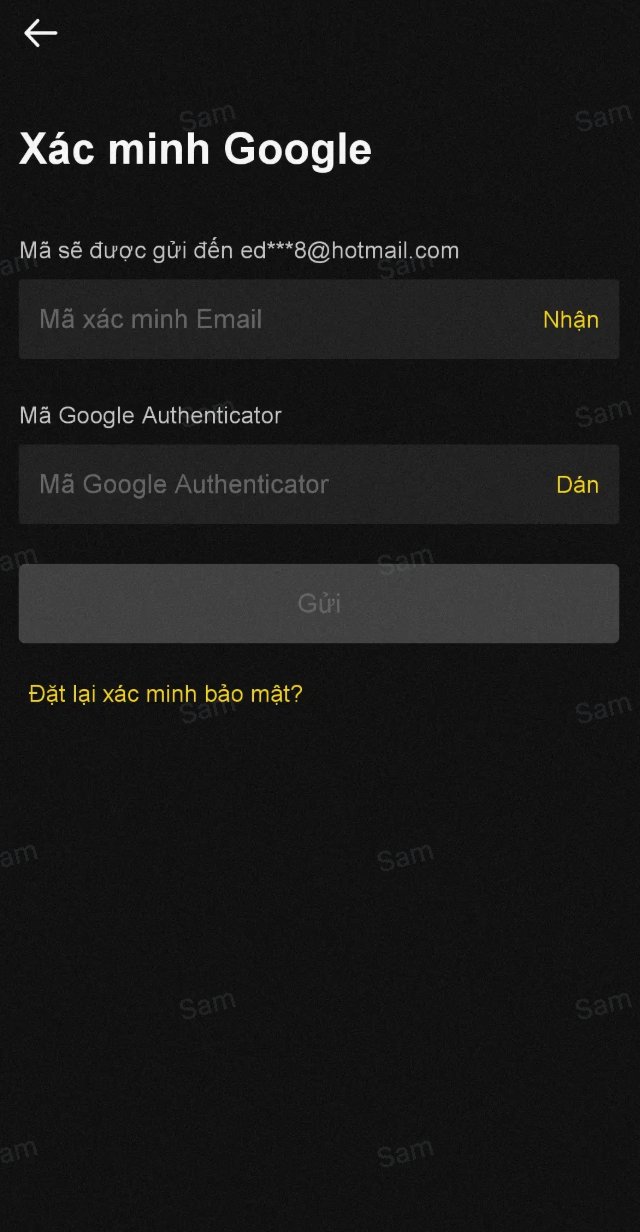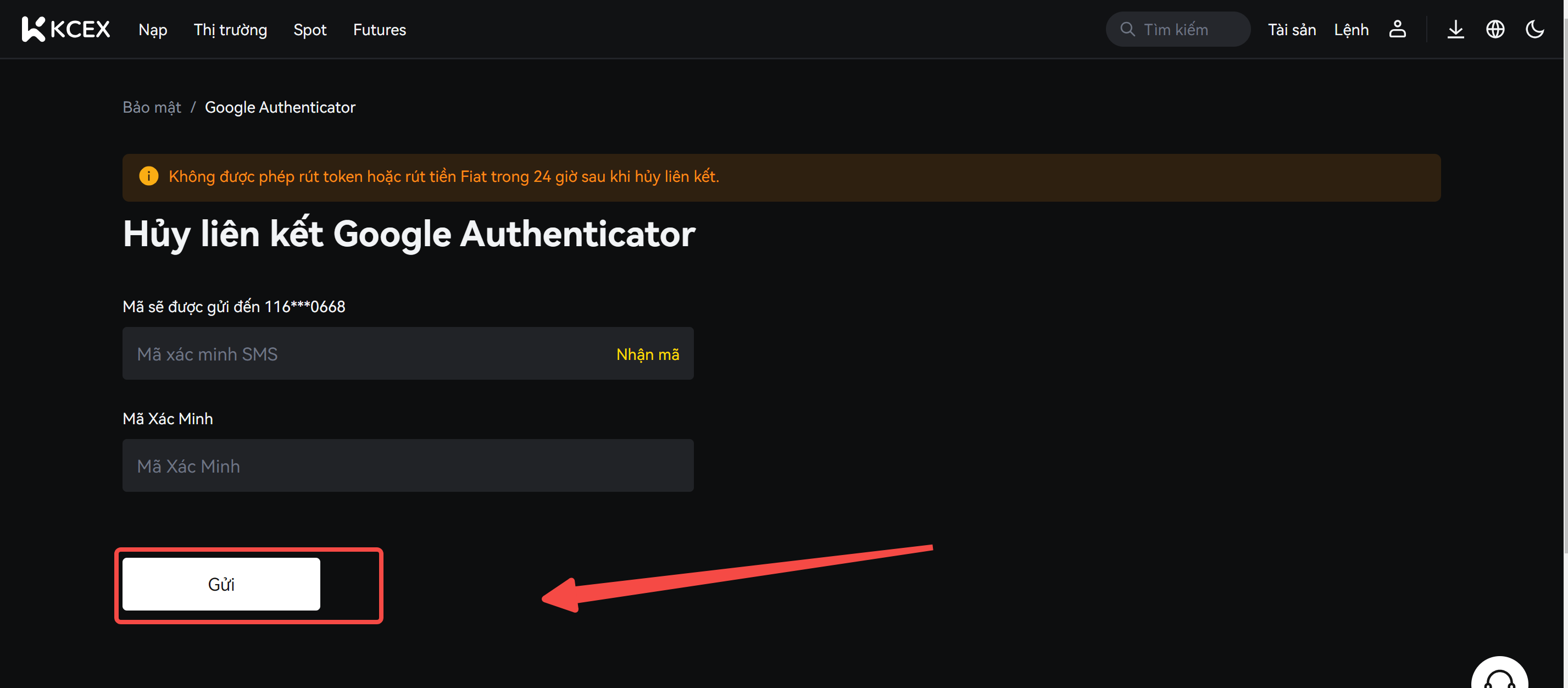 4. Nhập mã xác minh email / mã xác minh SMS / mã xác minh Google của bạn và nhấp "Gửi" để hoàn tất quá trình gỡ bỏ liên kết.