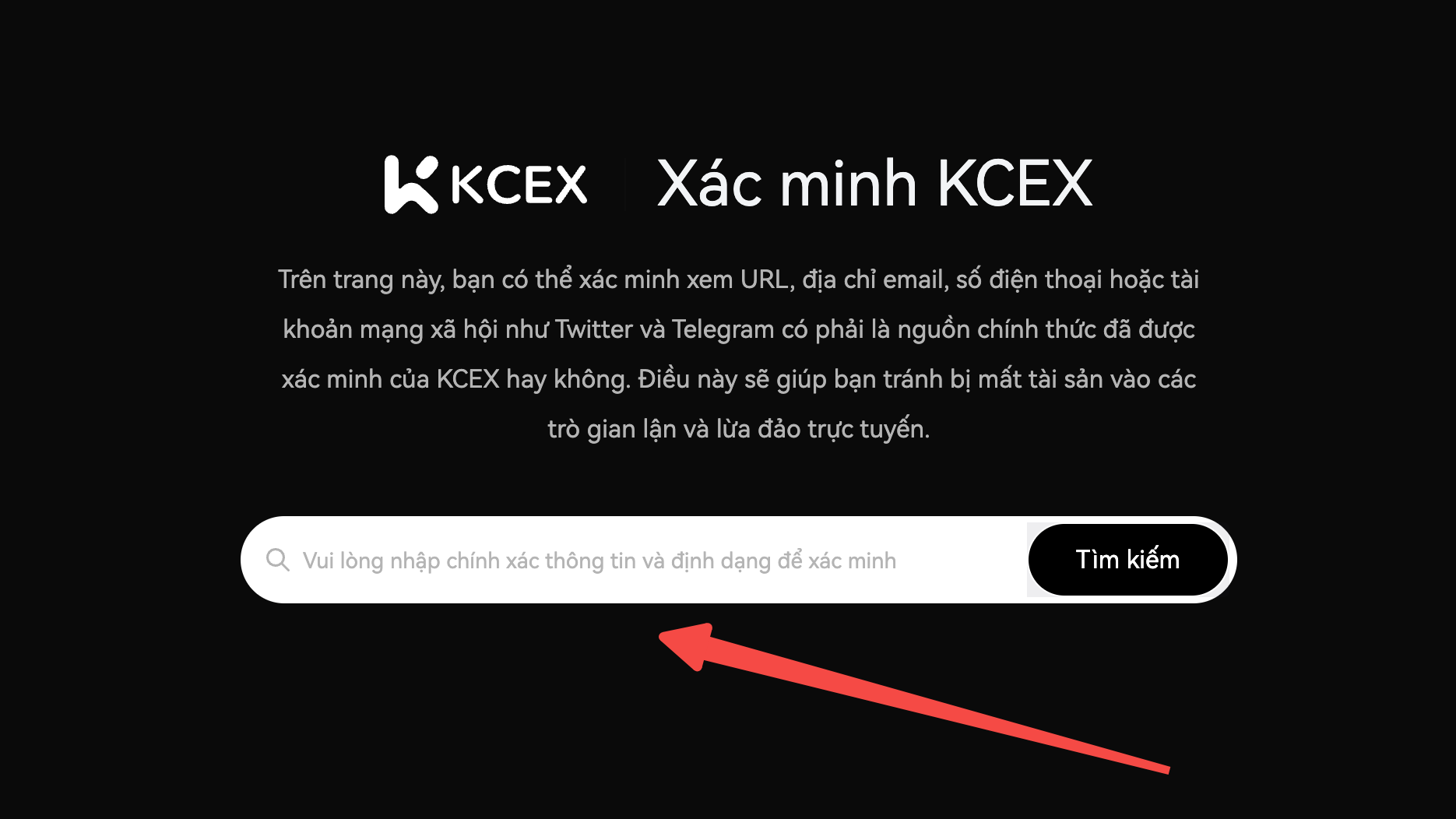 - Nếu bạn gặp phải tình huống có vẻ như là lừa đảo, hoặc nếu bạn cần xác minh tính xác thực của một trang web, dịch vụ khách hàng, hoặc email, KCEX cung cấp một kênh xác minh chính thức cho bạn. Vui lòng truy cập https://www.kcex.com/official-verify để thực hiện xác minh chính thức. Chúng tôi khuyến nghị bạn không nên chia sẻ thông tin cá nhân dưới bất kỳ hoàn cảnh nào.