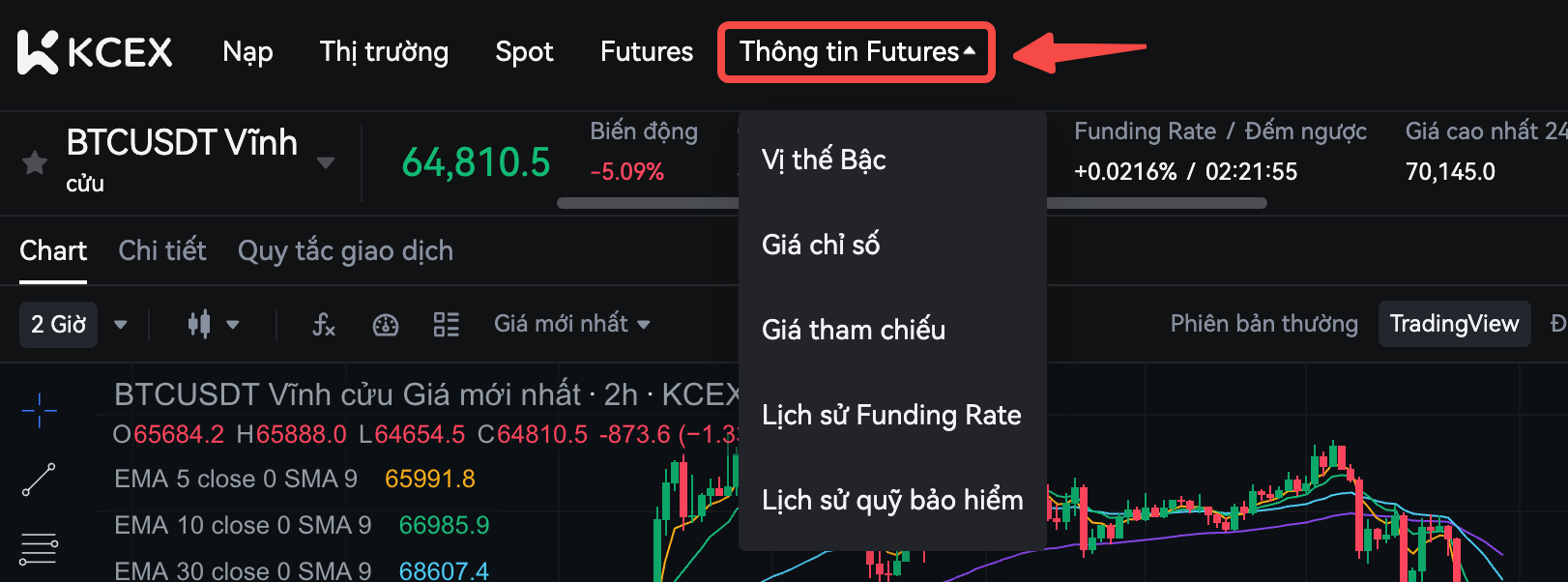 Bạn có thể xem thông số cho cặp giao dịch tương ứng trong ký hiệu thông báo ở phía bên phải trong giao diện giao dịch tương lai.