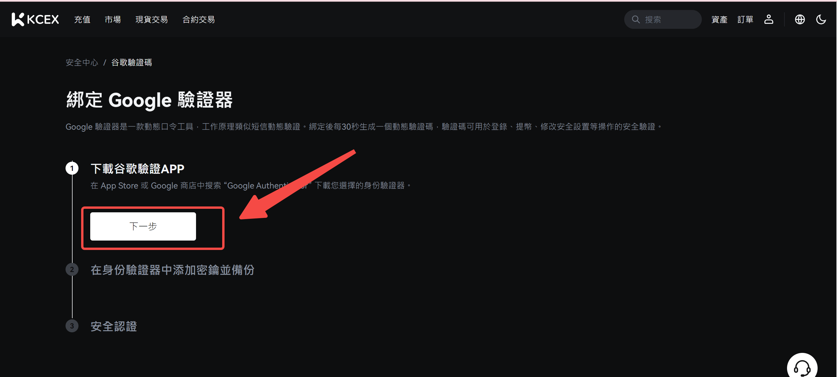 3. 在安全中心中,點擊[谷歌驗證]以進行綁定。