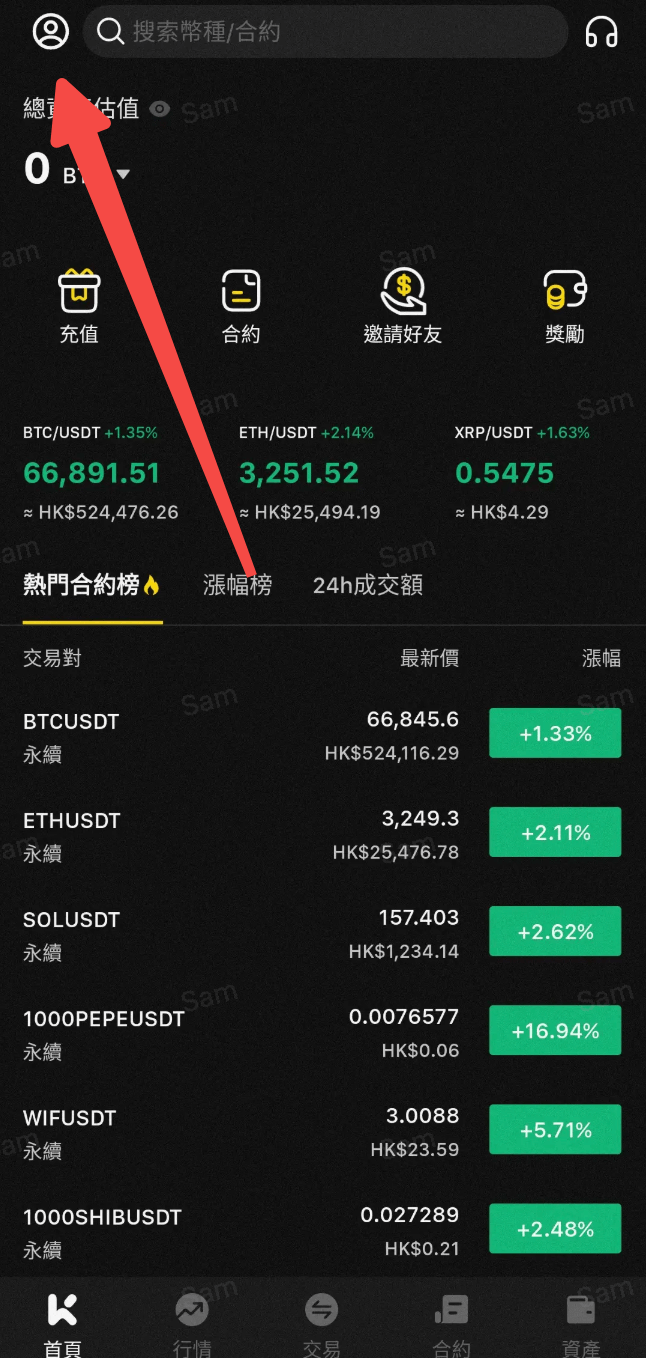 1. 在成功登錄APP後,請導航至首頁左上角,並點擊【個人中心】。